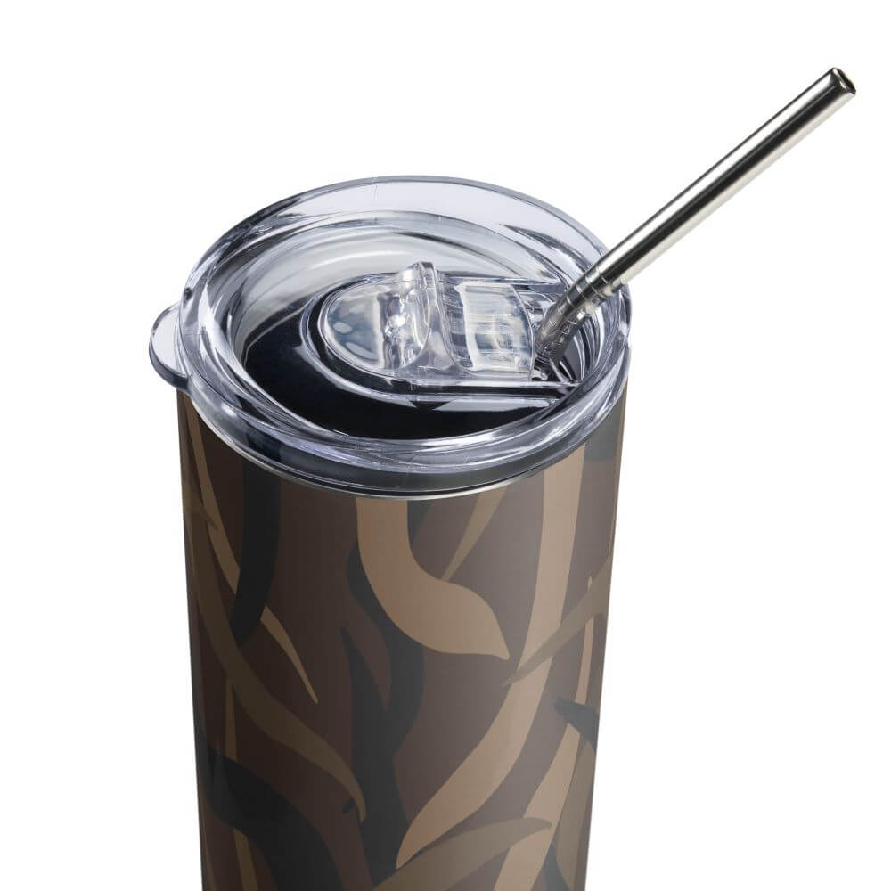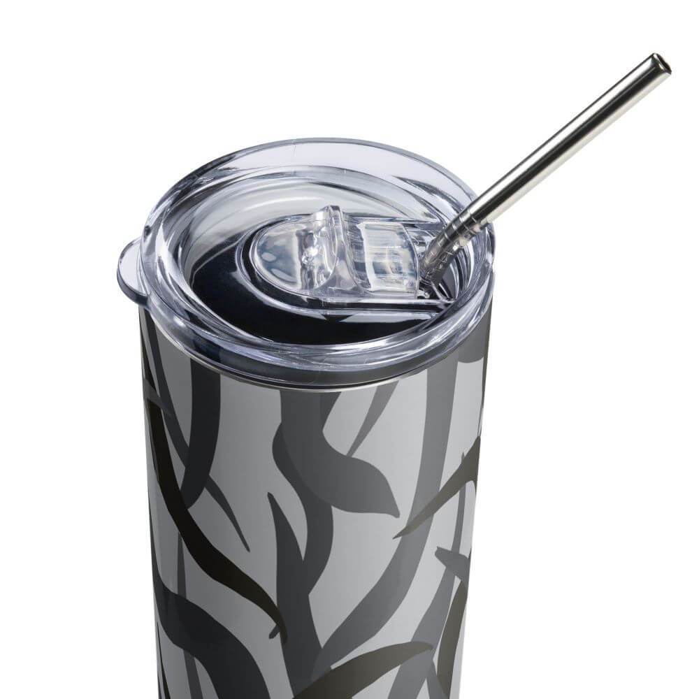 Enjoy hot or cold drinks on the go with this stylish stainless steel tumbler! This reusable tumbler with a metal straw is a perfect combo for hot or cold drinks at any time of the day.